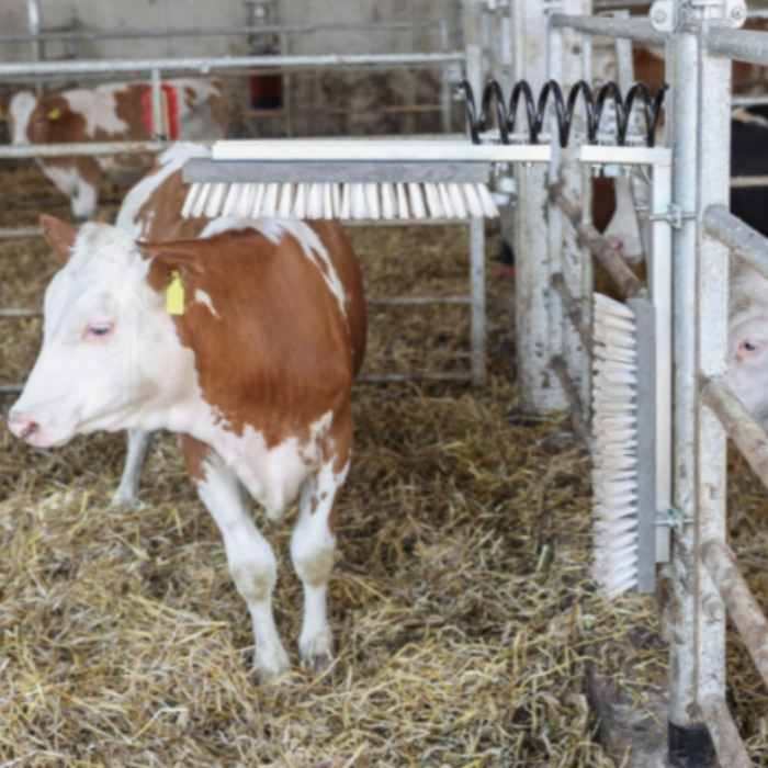 Description:The cow body brush is used to give the cow comfort by combing it's fur, itching, reducing dirt and parasites on the cow's body, and promoting the blood circulation of a dairy cow, thus improving milk production.This brush can help the cow develop a habit of Self-Cleaning.
